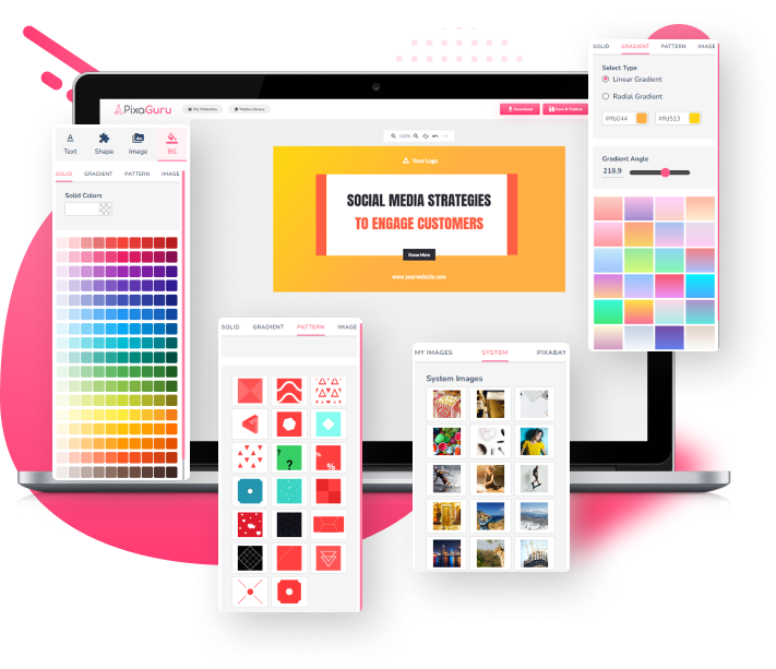 Pixaguru Editor Provides Customizable Background Options Such As Solid Colors, Gradients, Patterns, Or Images. You Can Also Use Your Own Colors, Gradients, And Images To Create A Stunning Design. Customize Your Background To Fit Your Needs With Pixaguru.