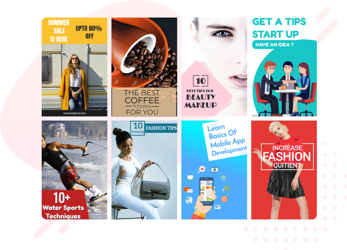 Pixaguru Editor makes it easy to create Facebook posts that meet the platform's guidelines. Choose from different sizes including landscape and square and utilize our prebuilt templates to create eye-catching designs.